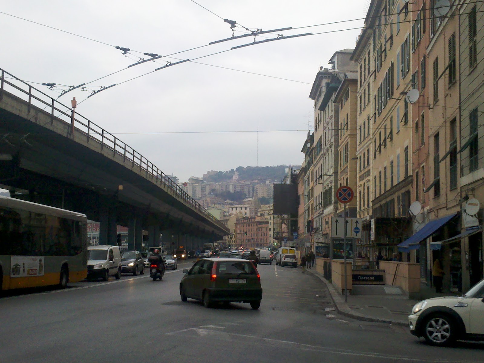 My evening out with the team at a pizzeria in the port at least showed me the way down to the port, so when I escaped an hour earlier than required the next day, I was able to wander down for a quick look in the daylight. The Genoa that I saw had that certain Mediterranean lived-in grandeur that many Italian cities posess; fading architectural glories simply being part of the activity going on in and around them. At least the busses were now electrified (using overhead transmission lines) so that the level of soot particle attack on old stone was reduced, even if the traffic otherwise continued apace.